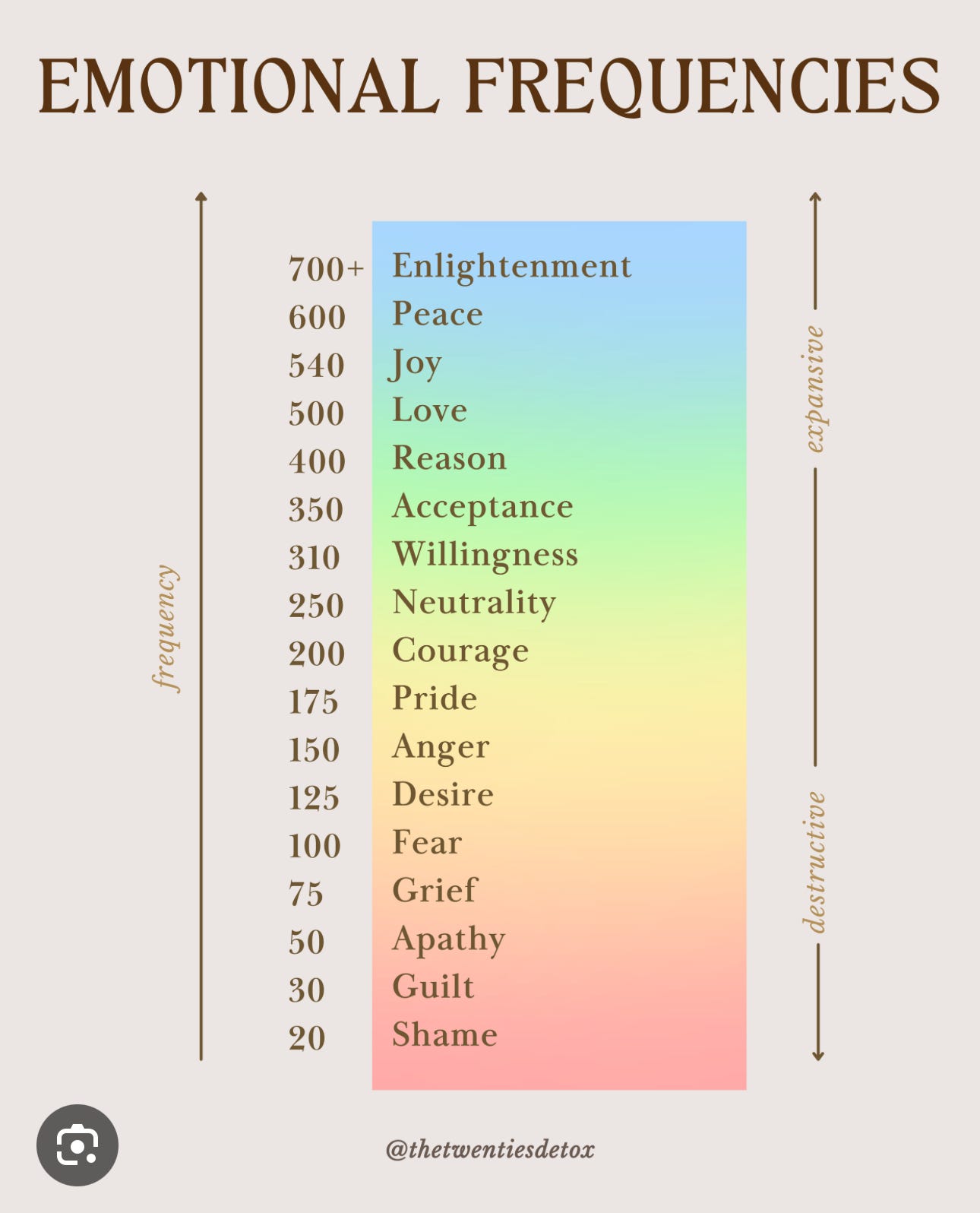 Lower frequency → energy is slower, heavier, and attracts experiences that align with that lower energy